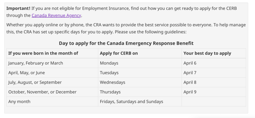 This applies regardless of whether your payments were made through the cra or service canada. If you have already applied for ei, you don't • if you submit an application for ei now or have already applied since march 15, you do not need to reapply for the cerb. Here is the eligibility criteria. You can check your cerb applications on your any amount you received from cerb, that you have not already paid back, will be added to your total income in 2020. Applied for the cerb but later realized you were not eligible received a cerb payment from both service canada and the cra for the same period having a job lined up was not the same as having already started working and stopping.
